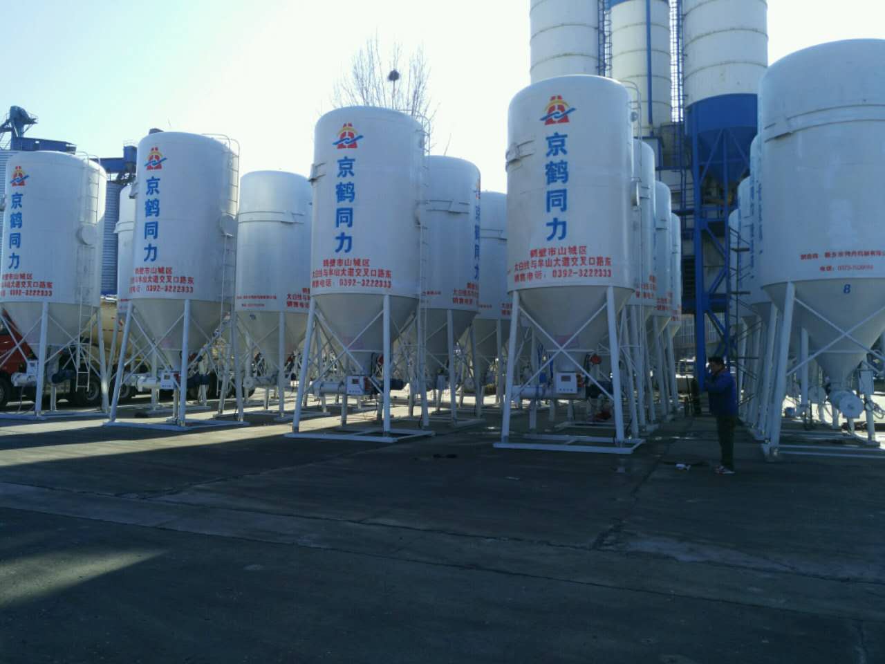 產(chǎn)量大的干粉砂漿設(shè)備,一般情況下會(huì)用到4-6個(gè)原料罐,其中兩個(gè)大罐用于裝放散裝水泥和粉煤灰,其余小罐用于裝放輕鈣、重鈣、砂、小料等。散裝水泥和粉煤灰進(jìn)罐不需要提升設(shè)備,依靠泵車打入。散裝粉煤灰倉(cāng)一般為圓筒支架結(jié)構(gòu),其上部有除塵設(shè)備,防止粉塵泄漏,下部裝有破拱裝置,防止粉料結(jié)塊,使粉料卸出順暢,并裝有料位傳感設(shè)備,可隨時(shí)掌握倉(cāng)內(nèi)物料使用情況。