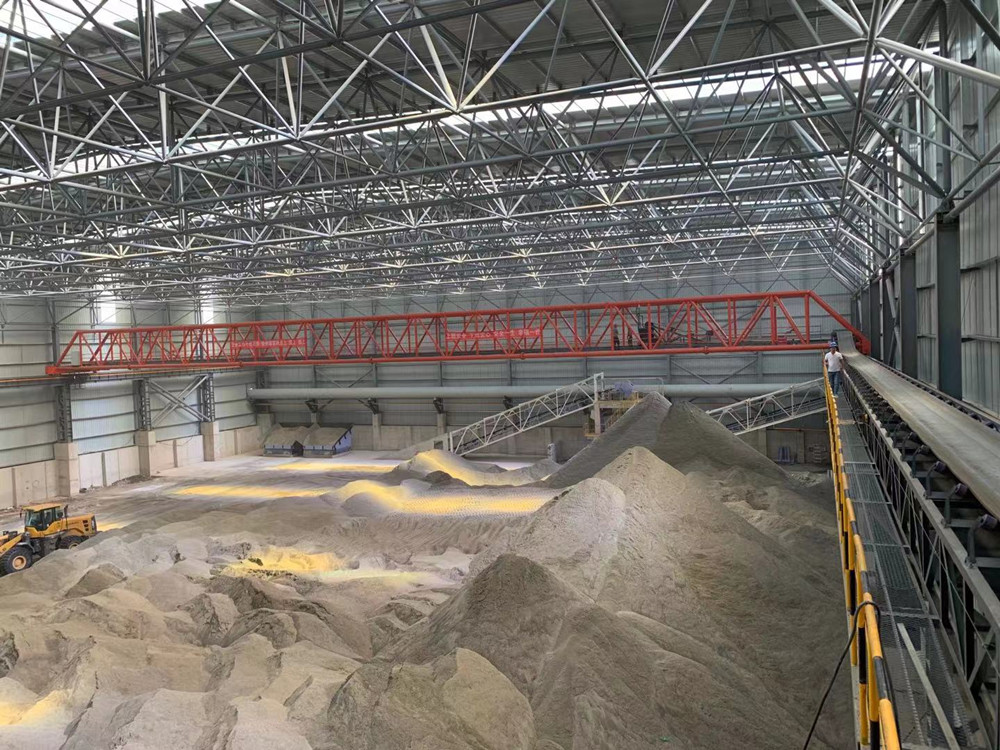布料機(jī)系統(tǒng)有著造價低廉,設(shè)備維修率低,堆料高,充分的利用了原料棚的上部空間,大大增加了料場的儲料能力。